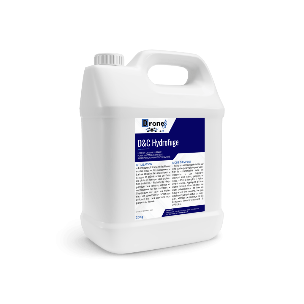 Hydrofuge de surface pour matériaux poreux. Spécial murs et façades. Fort pouvoir imperméabilisant contre l’eau et les salissures. Laisse respirer les matériaux. Stoppe la pénétration de l’eau de pluie en formant une protection invisible. Retarde la réapparition des lichens, algues et verdissures sur les surfaces. Sans pictogramme de sécurité.
